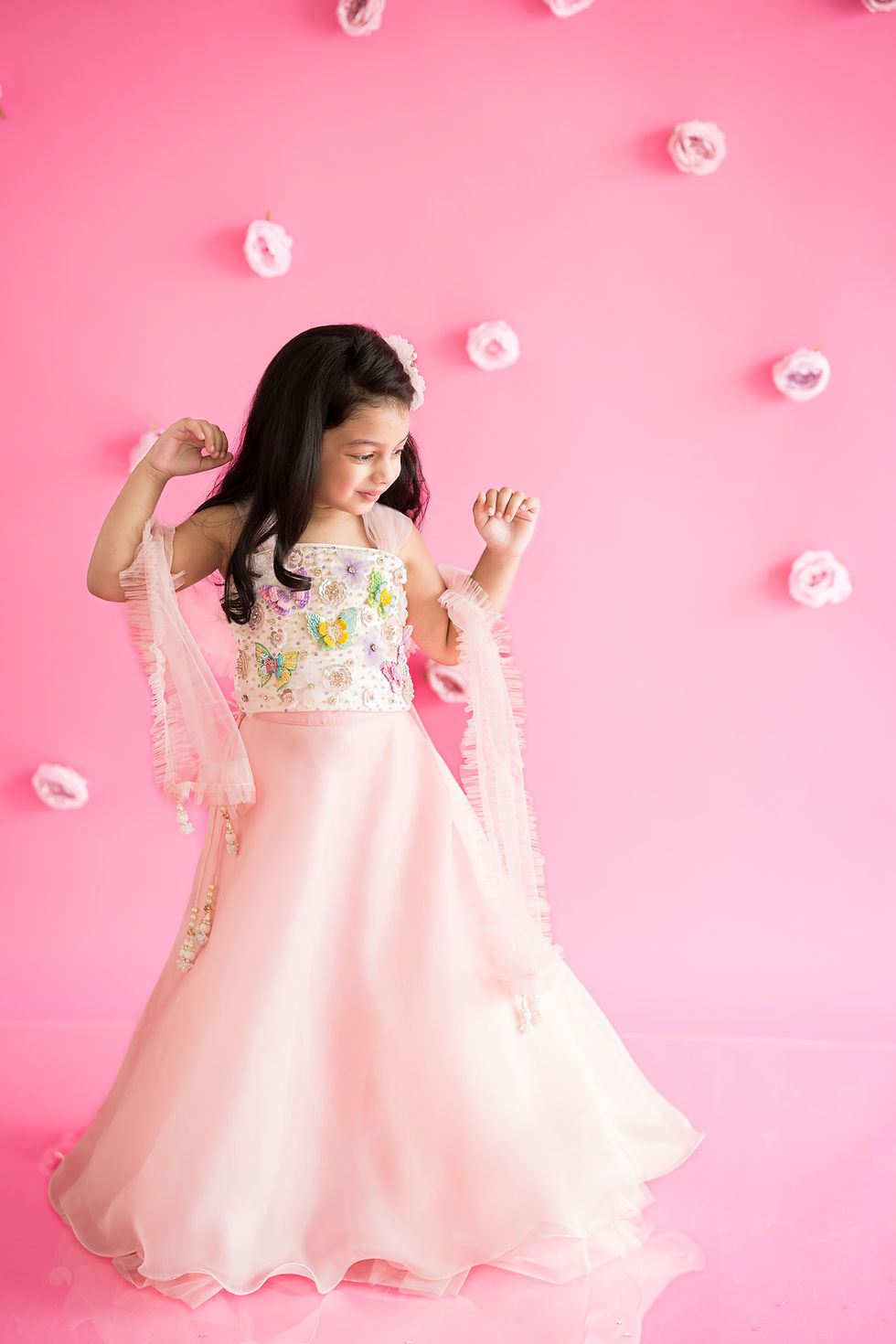 PINK ORGANZA LEHENGA+ BUTTERFLY TOP