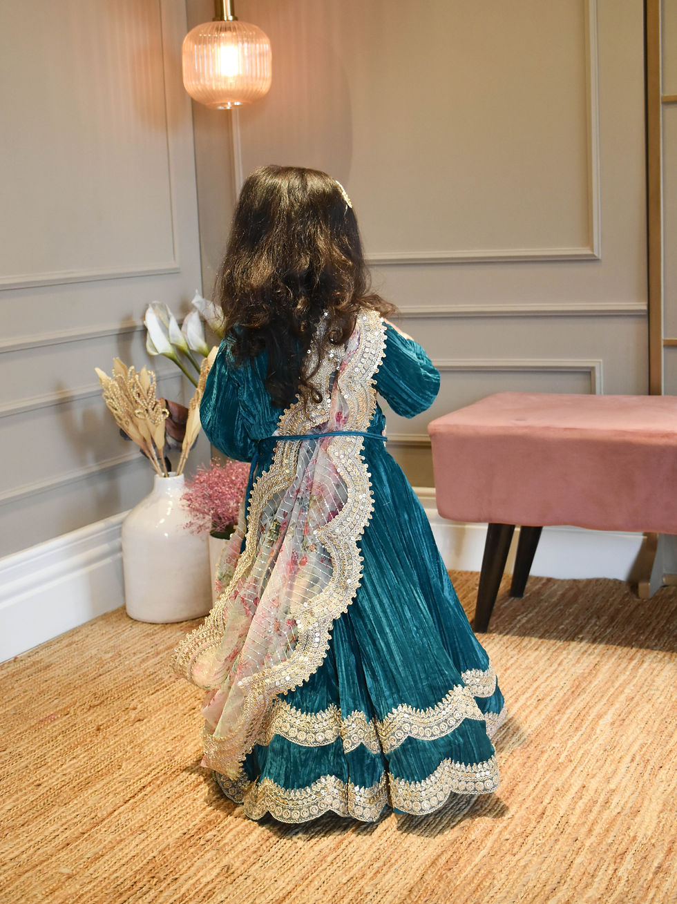 Turquoise Blue Velvet Kurti and Plazo Pant