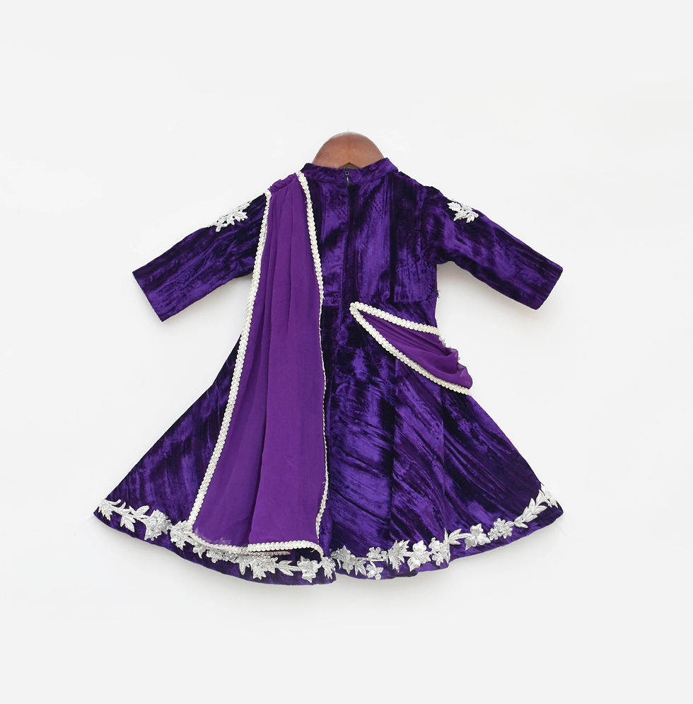 Purple Bandhej Scalup Lehenga Choli and Dupatta