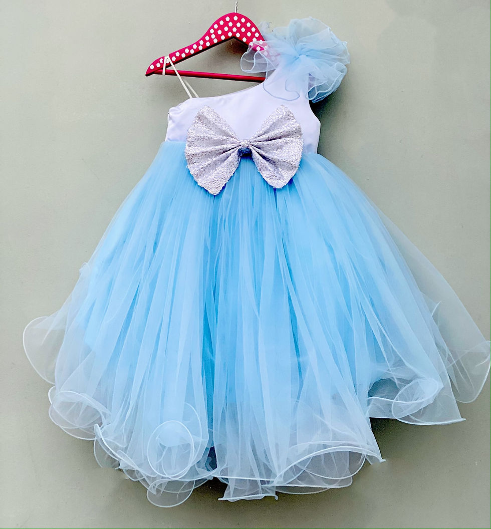 Off white and Dark Blue Silk Frock